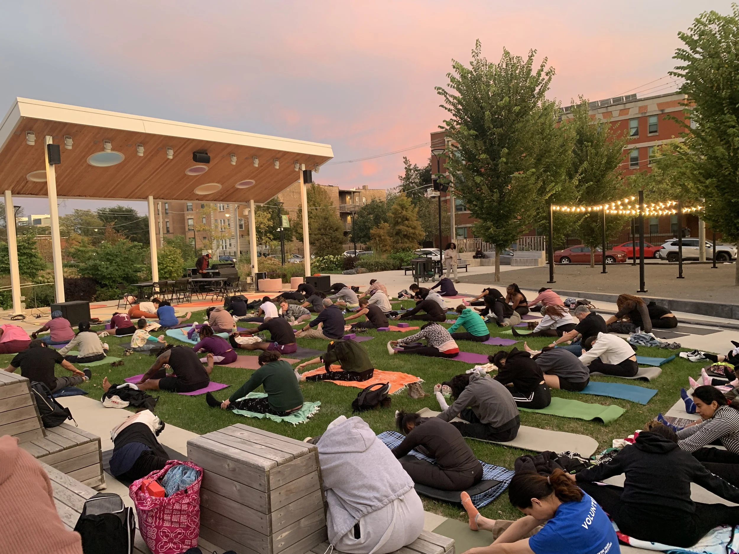 Yogis spread their mats on the Arts Lawn for Sunset Yoga with Rhya Moffitt. Each class featured floral teas and scented oils along with Black liberation readings. At In the Making: A Public Art Journey Through Washington Park, APL led a trolley tour of the imagined Washington Park Public Art Corridor, a new effort to expand the neighborhood’s commemorative landscape.