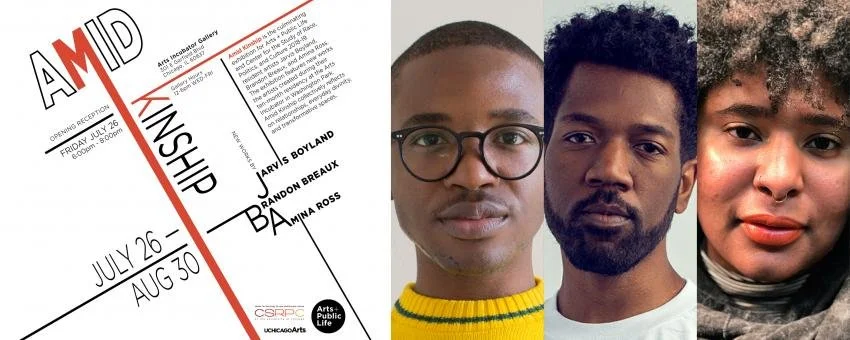Amid Kinship is the culminating exhibition for the 2018-19 resident artists, Jarvis Boyland, Brandon Breaux , and Amina Ross, featuring new works the artists created during their ten-month residency at the Arts Incubator in Washington Park that collectively reflect on relationships, everyday divinity, and transformative spaces.